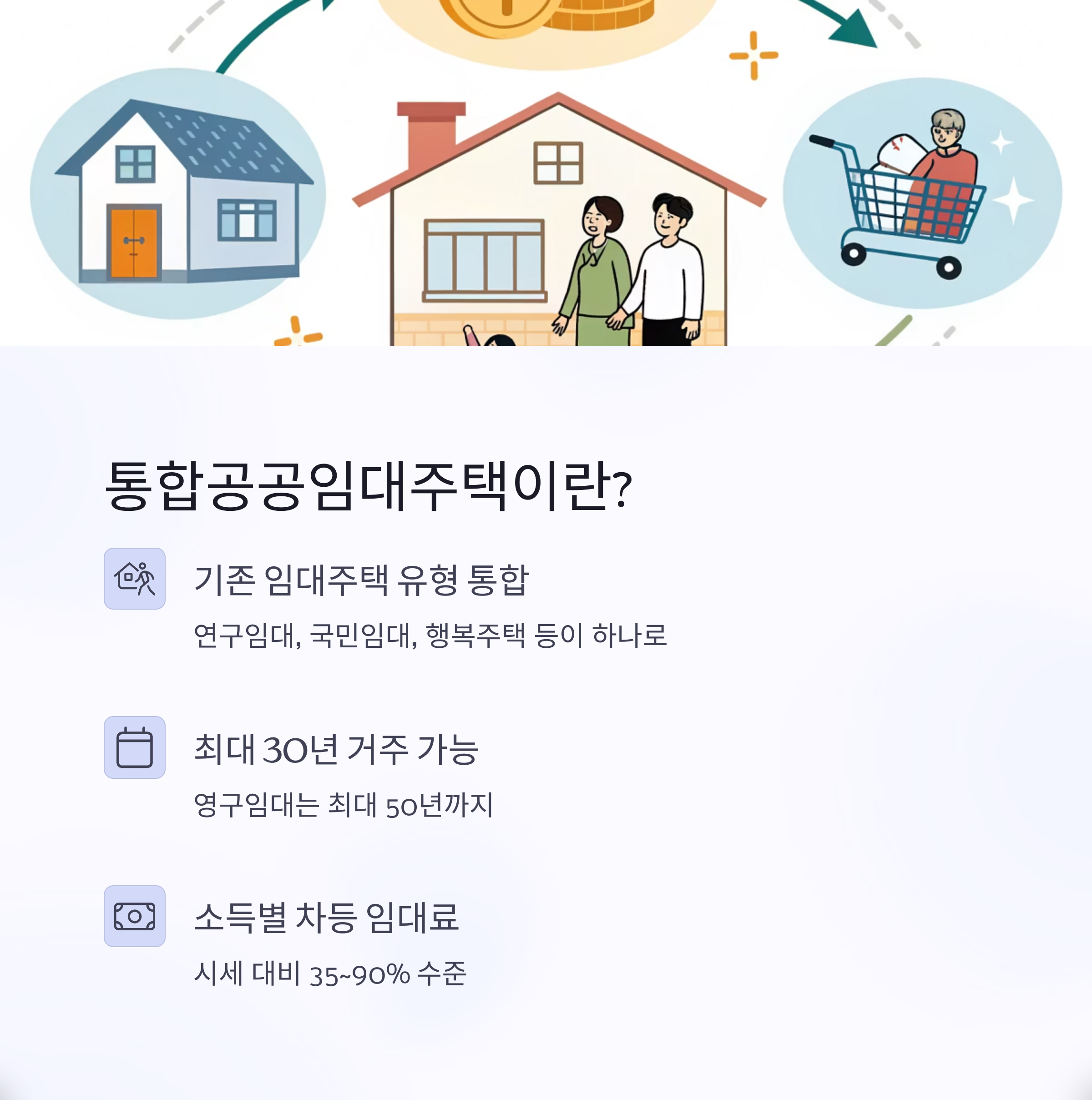 2025년 통합공공임대주택 제도는 소득 수준과 자산 조건에 따라 차별화된 혜택을 제공합니다. 특히, 임대료의 시세 대비 낮은 비율, 30년에 이르는 장기 거주 가능 기간, 그리고 출산 가구 우대 정책이 주요 장점입니다.