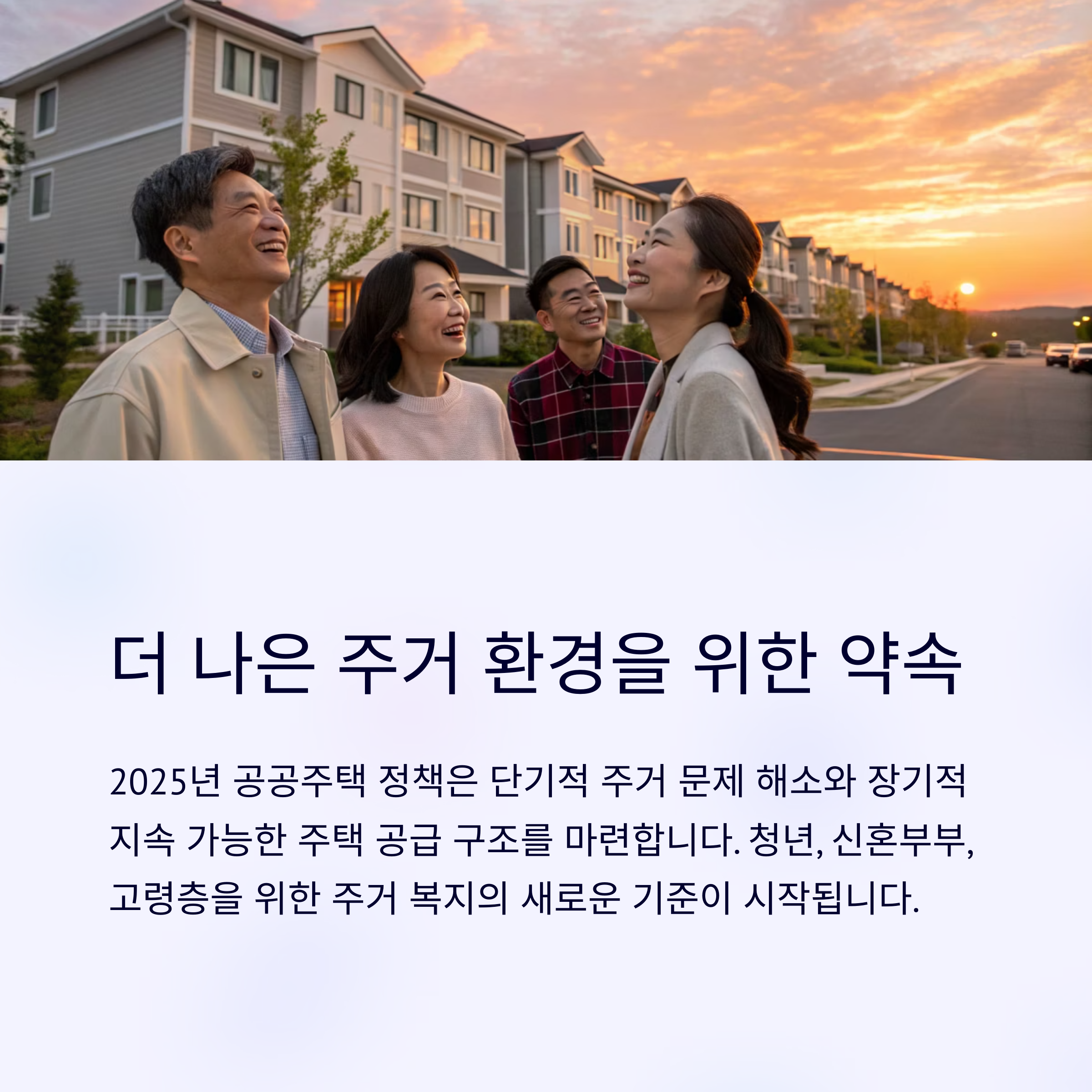 이번 정책은 단기적으로 주거 문제를 해소하고, 장기적으로 지속 가능한 주택 공급 구조를 마련할 것입니다. 특히, 청년, 신혼부부, 고령층 등 다양한 계층에 걸친 지원은 주거 복지의 새로운 기준을 제시하고 있습니다.