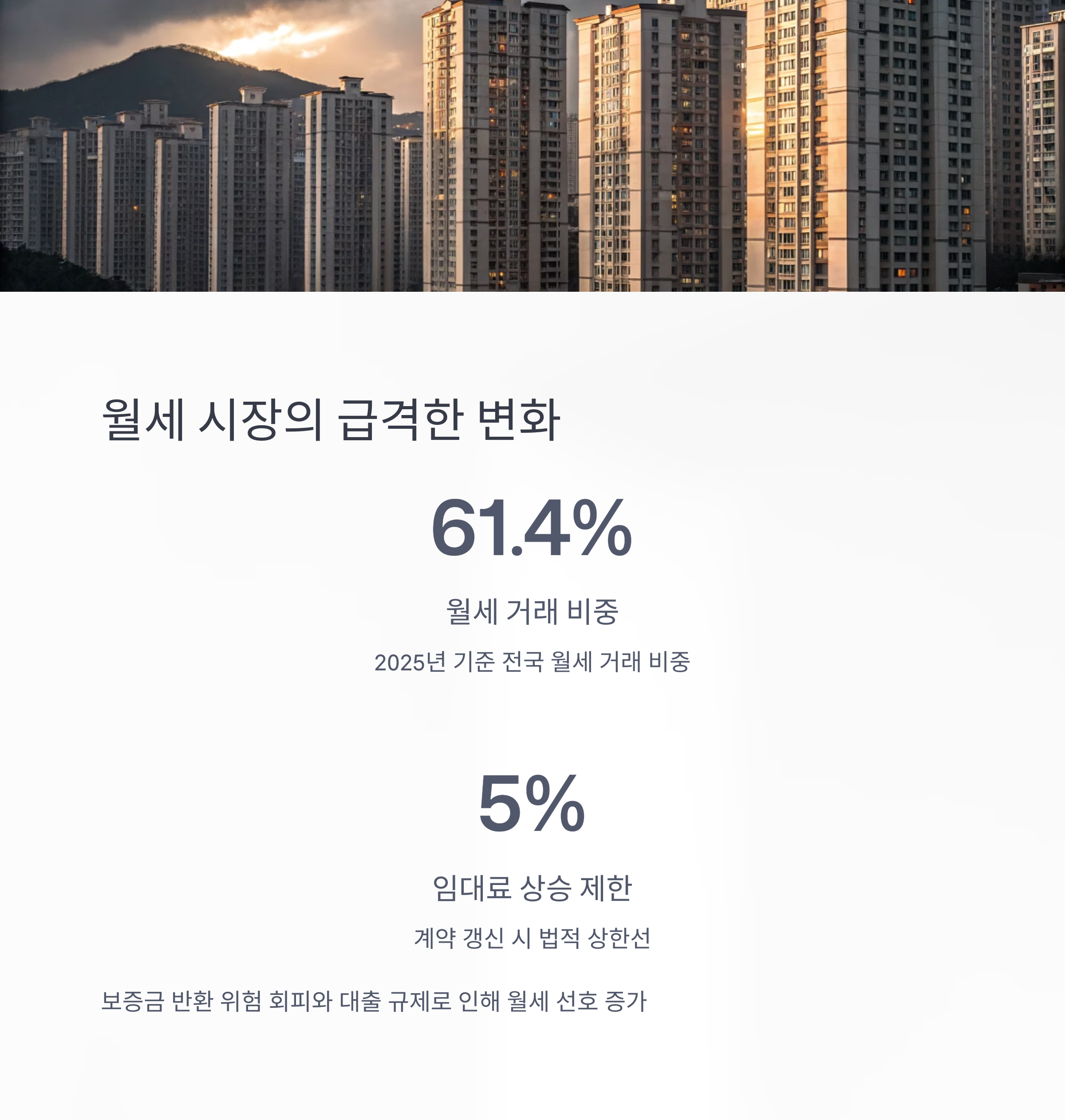 2025년 기준 전국 월세 거래 비중이 61.4%로 급격히 증가하였습니다.